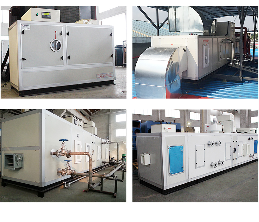 在玻璃行業合片室中,一般的工藝要求是:溫度 t=20 -26 ℃ ,相對濕度φ≤25% 。這種場合只有使用轉輪除濕機才能達到這樣的工藝需求。