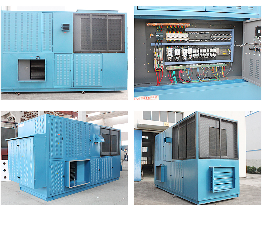 在噴涂車間的生產(chǎn)工藝中,有著嚴(yán)格的溫濕度要求,一般的要求為溫度 T ≤ 28 -30 ℃ ,相對濕度RH ≤ 40-50% 。同時由于這些場合又為高大廠房,且車間回風(fēng)含有油漆等有害揮發(fā)成份,不能回收,只能使用全新風(fēng)系統(tǒng)。因?yàn)橄募炯捌渌邷囟嘤昙竟?jié)的空氣中含水量較大,待處理的鋼鐵表面會均勻分布著細(xì)少的水滴,會直接影響到油漆在鋼鐵表面的附著牢度,嚴(yán)重的甚至是油漆不能直接附著到鋼鐵的表面。同時,油漆噴涂后,干燥時間將大大延長,影響后續(xù)的生產(chǎn)工藝。特點(diǎn):制冷+除濕+加熱